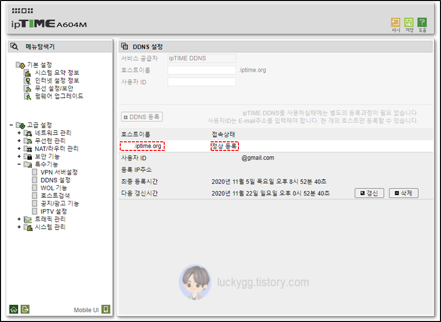 ipTIME์์ DDNS ์ค์ ํ๊ธฐ