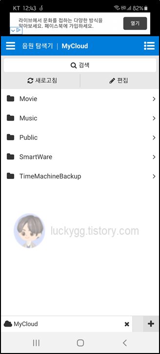 μΆκ°ν MyCloudλ₯Ό μ ννλ©΄, μλμ κ°μ΄ μλ²μ λ°μ΄ν°κ° νμλ©λλ€. μμ νμΌμ μ ννλ©΄ μ€μκ° μ€νΈλ¦¬λ°μ΄ κ°λ₯ν©λλ€.
