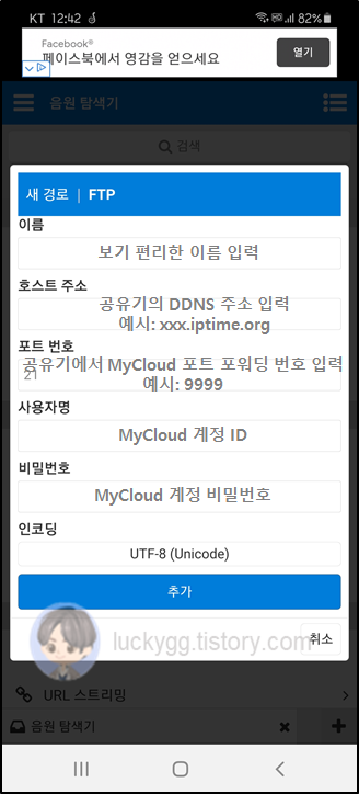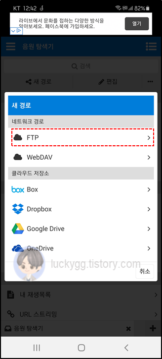 MyCloudλ₯Ό μΆκ°νκΈ° μν΄ FTP νλͺ©μ μ νν©λλ€.