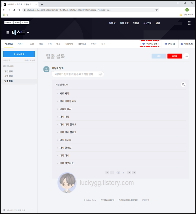 ๋ฐํ ์ ๋ ฅ ํ ํ์ต์ด ํ์ํ๋ฉด ์๋จ ๋ฉ๋ด์ ๋จธ์ ๋ฌ๋ ์คํ ๋ฒํผ์ ํด๋ฆญํ์ฌ ์งํํฉ๋๋ค.