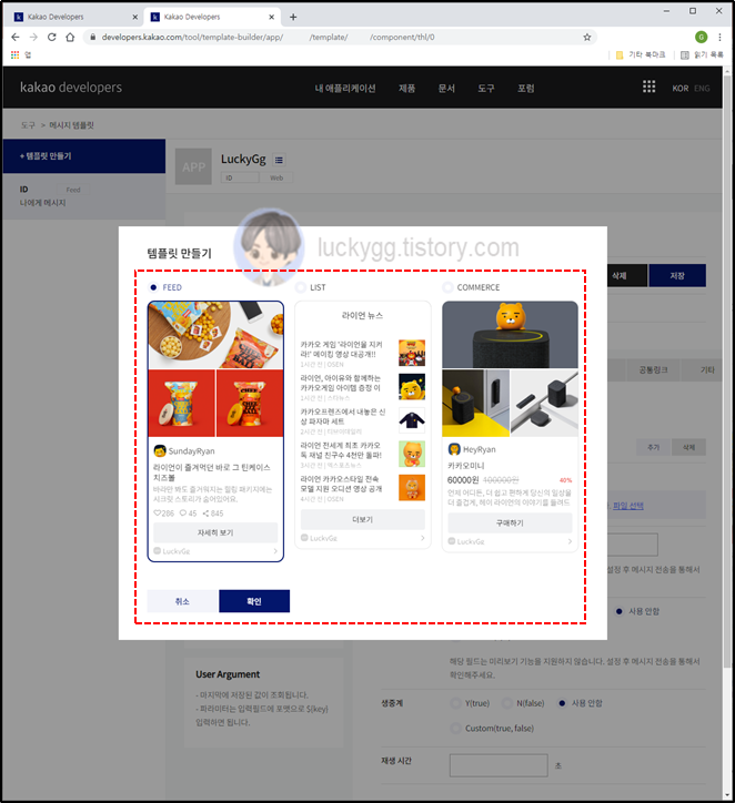 ์ข์ธก ๋ฉ๋ด์์ ์นด์นด์ค๋งํฌ๋ฅผ ์ ํํ๊ณ , ๋ฉ์์ง ํ ํ๋ฆฟ ๋น๋ ๋ฐ๋ก๊ฐ๊ธฐ๋ฅผ ํด๋ฆญํฉ๋๋ค.