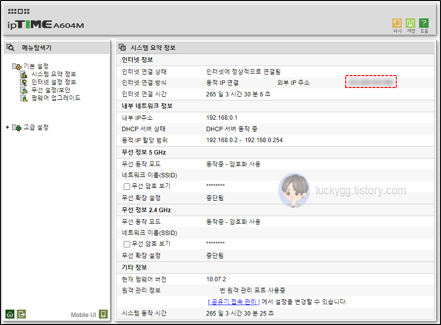์์ดํผ ํ์(ipTIME) ์ธ๋ถ IP ํ์ธํ๋ ๋ฐฉ๋ฒ