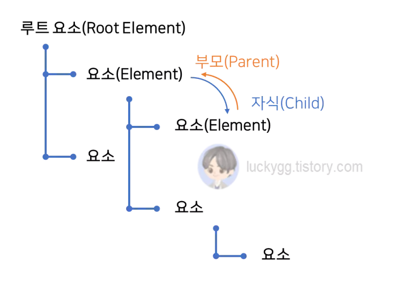 ธ๋(Node)๋ฅผ ์์(Element)๋ผ๊ณ ๋ถ๋ฅด๊ณ , ๋ฃจํธ(Root)๋ถํฐ ์์ํ์ฌ ํ์์์๊ฐ ์ด์ด์ง๋๋ค. ํ์ ์์ ์